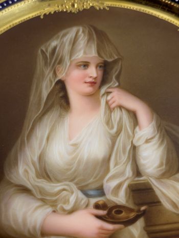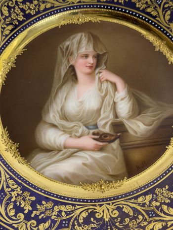 Dresden Portrait Plate of a Beautiful Lady with a White Veil and a White Flowing Dress