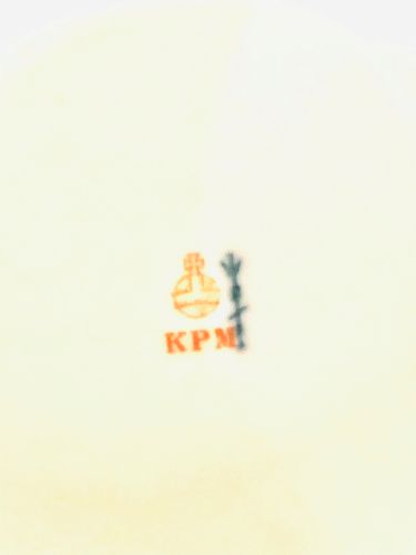 We want to offer you this very beautiful KPM covered bowl on a pedestal. The cover has four gorgeous hand-painted bouquets of flowers. The handle of the cover is decorated with raised gold fruit as well as raised roses in pink and blue. It is a very special piece, and the artistry is magnificently done. When you take the cover off the bowl, you can see a central large hand-painted flower bouquet with a tulip, as well as four other smaller flower bouquets. This would be a fabulous addition to your table setting. You can use it to keep any food hot while you are serving your meal, or as a decoration on your sideboard or on your table.